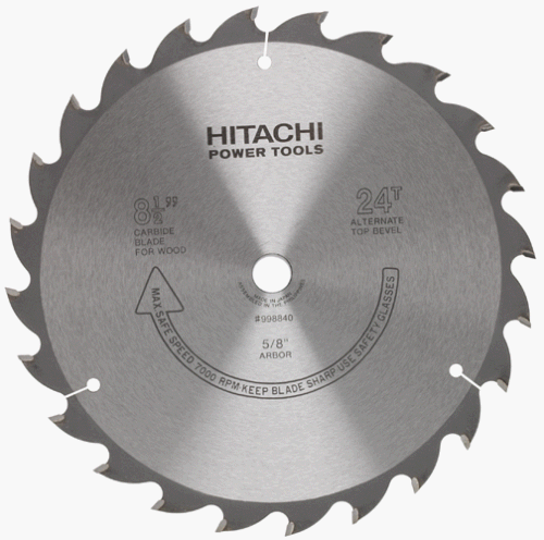 Hitachi 998840 Tungsten Carbine Tipped 8-1/2-Inch ATB 5/8-Inch Arbor Finish Saw Blade, 24-Teeth Feature